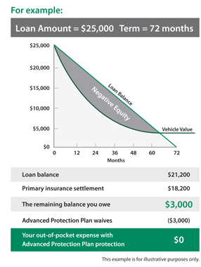 What is Advanced Protection Plan? If your vehicle is totaled or stolen and considered a total loss, the Advanced Protection Plan covers all or most of the difference between what you owe and the amount of your primary insurance settlement. Better Protection. Better Peace of Mind.